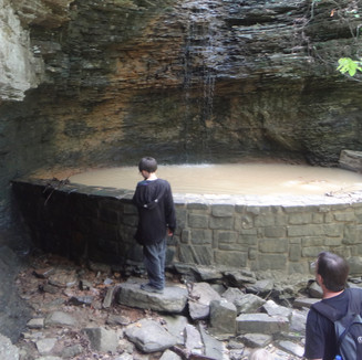 We fallowed the path back up, stopped at the very little waterfall thing, was asked if the water was cold.. no one even wanted to touch it, little too murky for us!
